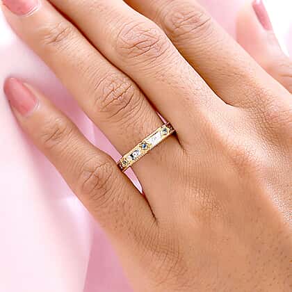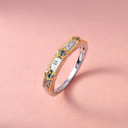 GP Celestial Dream Collection - Blue Topaz and Natural Cambodian Zircon Band Ring in Platinum Overlay and 18K Vermeil Plated Sterling Silver