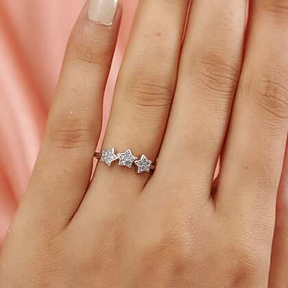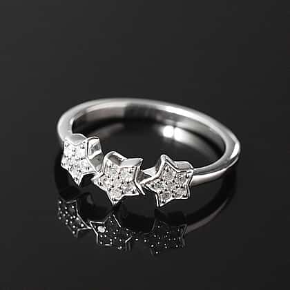 GP Celestial Dream Star Diamond Trilogy Ring in Platinum Plated Sterling Silver