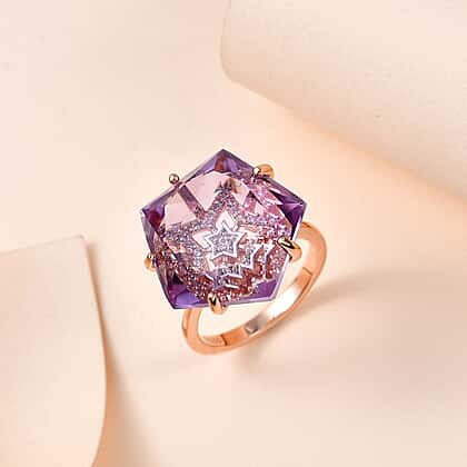 GP Celestial Dream Collection - Pink Amethyst & Natural Zircon Ring in 18K Vermeil RG Plated Sterling Silver 18.80 Ct