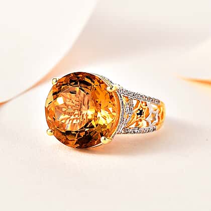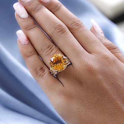 GP Celestial Dream Collection (Hanabi Cut) - Citrine & Natural Zircon Ring in Two Tone Plating Sterling Silver 13.21 Ct, Silver Wt. 5.5 Gms.