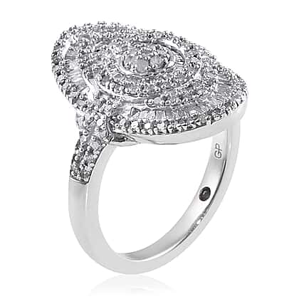 GP 0.78 Ct Diamond and Blue Sapphire Cluster Ring in Platinum Plated Sterling Silver