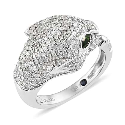 GP 1.27 Ct Diamond and Multi Gemstone Panther Ring in Platinum Plated Silver