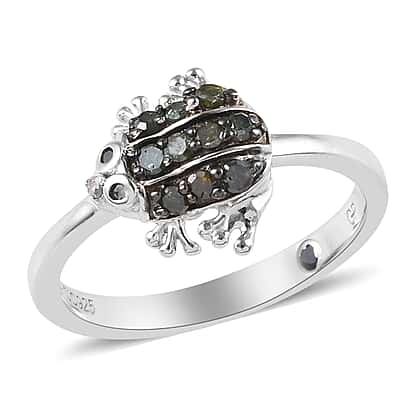 GP Green and Black and White Diamond and Blue Sapphire Creature Couture Ring in Platinum Plated Silver