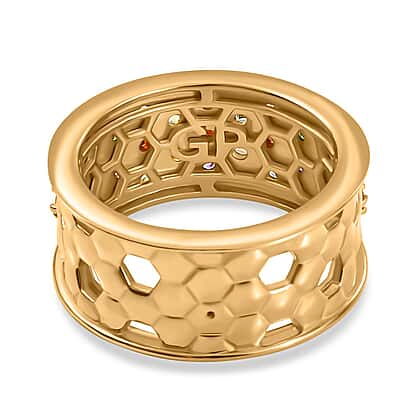Inspired by nature’s beauty, this African amethyst cluster ring by the GP Honeycomb Collection is a true blend of colour and craftsmanship. A honeycomb lattice frames a burst of fiery garnets, golden citrines, rich green peridots, and regal purple amethysts, each carefully placed for maximum brilliance. Crafted in 18K vermeil yellow gold plated sterling silver, the band is hypoallergenic, tarnish-resistant, and designed for everyday comfort. The gemstones are robust, sparkling with enduring vibrancy that makes the piece both striking and practical. Uniquely appraised, this statement ring symbolises abundance and individuality, making it an heirloom-worthy addition to your jewellery collection.
