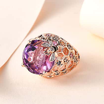 GP HoneyComb Collection - Amethyst, Multi Sapphire and Natural Zircon Ring in 18K Vermeil Rose Gold Plated Sterling Silver