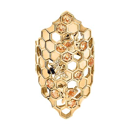 GP Honeycomb Collection - Citrine Honeybee Hive Ring in 18K Vermeil Yellow Gold Plated Sterling Silver 1.40 Ct.