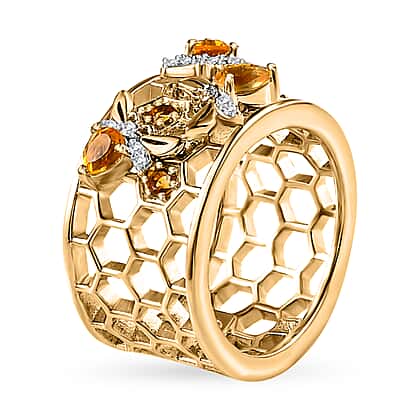 GP HoneyComb Collection - Citrine & Natural Zircon Ring in 18K Vermeil Yellow Gold Plated Sterling Silver 1.11 Ct, Silver Wt. 6.99 Gms