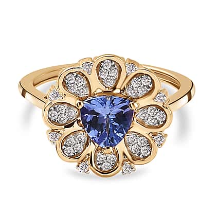- GEMSTONE DETAILS: Through prongs, an Trillion faceted Premium Tanzanite Sapphire and a number of round faceted cut Diamonds have been studded onto this ring