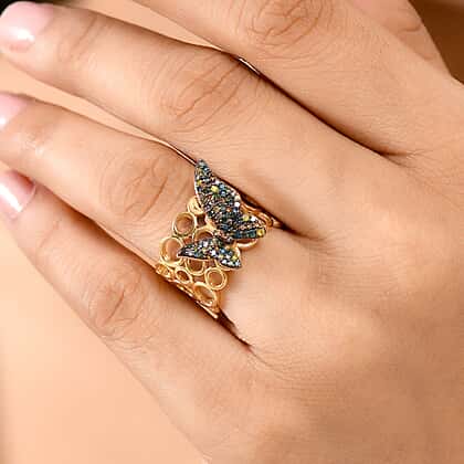 GP Italian Garden Collection - Champagne Diamond & Multi Gemstones Cluster Ring in 18K Vermeil Yellow Gold Plated Sterling Silver, 0.51 Ct.