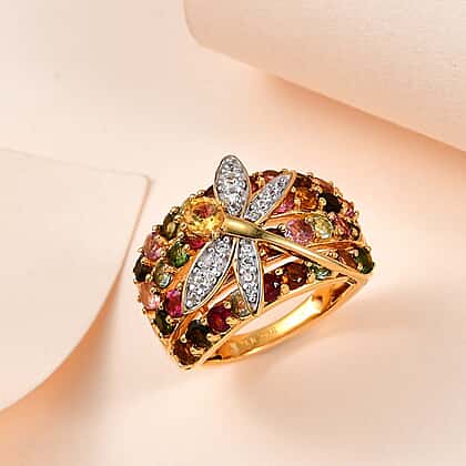 GP Italian Garden Collection - Citrine & Multi Gemstone Cluster Ring in 18K Vermeil Yellow Gold Plated Sterling Silver 3.03 Ct.