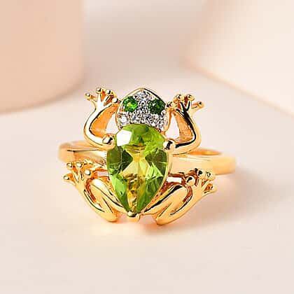 GP Italian Garden Collection - Hebei Peridot & Multi Gemstone Ring in 18K Vermeil YG Plated Sterling Silver 2.07 Ct