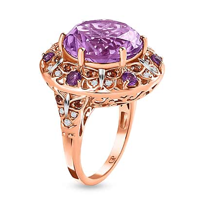 GP Italian Garden Collection - (Lotus Cut) Ultimate Rose De France Amethyst and Multi Gemstone Ring in 18K Vermeil Rose Gold Plated Sterling Silver 9.00 Ct
