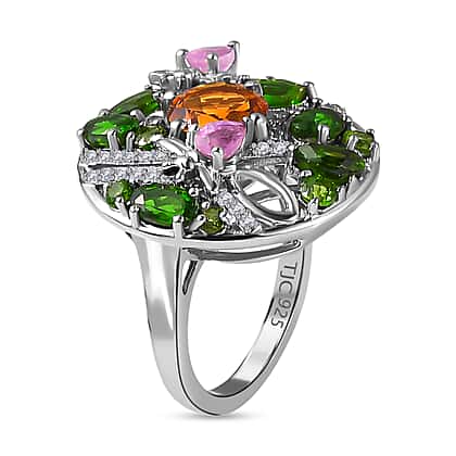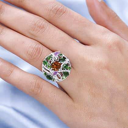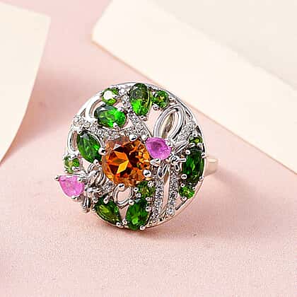 GP Italian Garden Collection - Madeira Citrine, Natural Chrome Diopside & Multi Gemstone Ring in Platinum Overlay Sterling Silver 3.86 Ct.