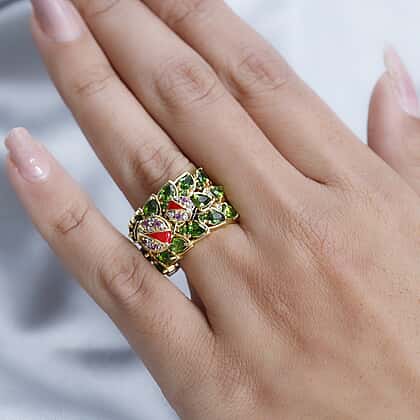 GP Italian Garden Collection - Natural Chrome Diopside, Rhodolite Garnet & Natural Zircon Cluster Ring in 18K Vermeil YG Plated Sterling Silver 3.28 Ct, Silver Wt. 9.21 Gms