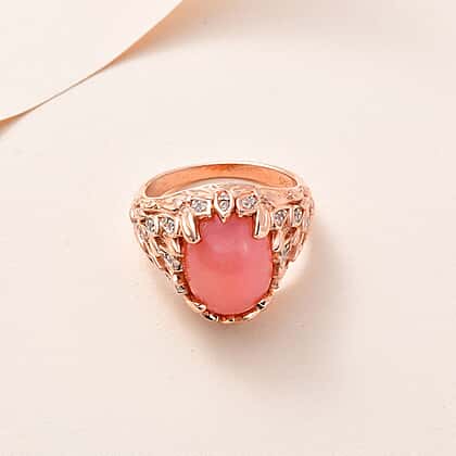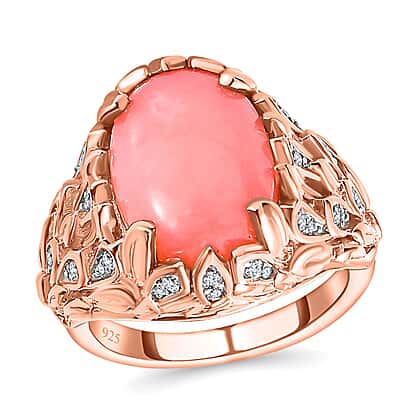 GP Italian Garden Collection - Natural Pink Opal & Zircon Ring in 18K RG Vermeil Plated Sterling Silver 5.00 Ct.