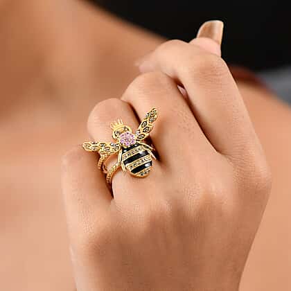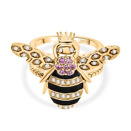 GP Italian Garden Collection - Pink Sapphire & Multi Gemstones Crown on Bee Ring in 18K Vermeil Yellow Gold Plated Sterling Silver