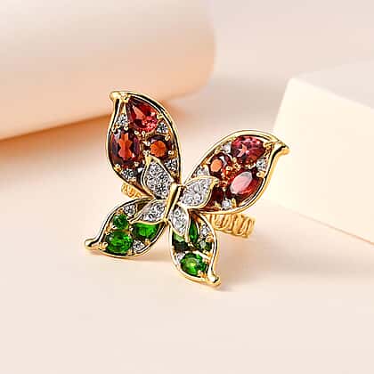 Dare to don the GP Italian Garden Collection's Butterfly Ring, a visionary jewel where innovation flutters as a butterfly. Adorned with the fiery brilliance of red garnet, the lush greenery of natural chrome diopside, and the sparkling touch of natural zircon, this ring is a game-changing piece that captures the transformative beauty of nature. Each detail reflects a pioneering spirit, with inventive craftsmanship that turns a classic symbol into a futuristic treasure, embodying out-of-the-box elegance and original creativity.