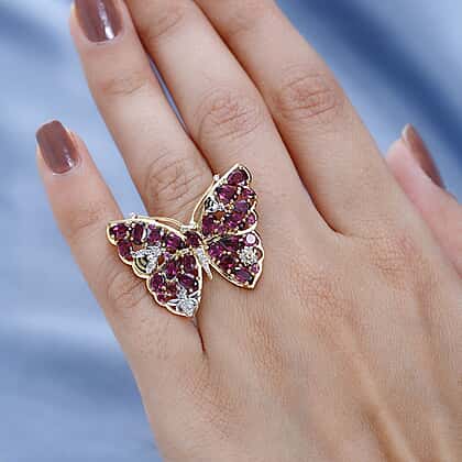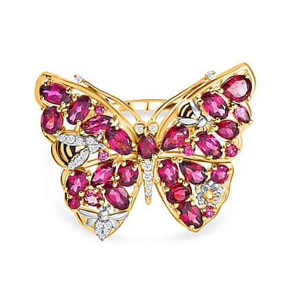 GP Italian Garden Collection - Rhodolite Garnet, Citrine & Natural Zircon Butterfly Ring in Platinum Overlay & 18K Vermeil YG Plated Sterling Silver 5.93 Ct, Silver Wt. 7.00 Gms
