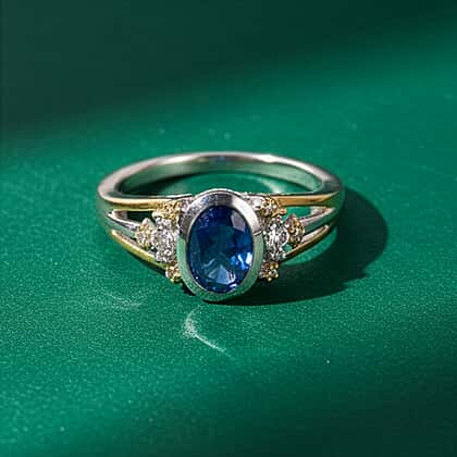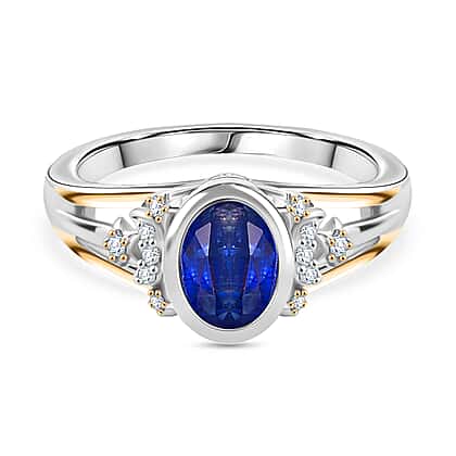 GP Kyanite, White Zircon, Kanchanaburi Blue Sapphire Fancy Ring in Rhodium OverlaySterling Silver 1.804 Ct.