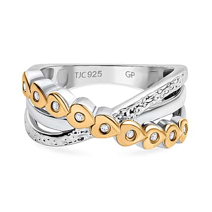 Celebrate love and elegance with this exquisite lab-grown diamond heart ring from the GP Collection. Crafted in 18K vermeil yellow gold-plated sterling silver, this intricate design features a delicate row of golden hearts, each adorned with a sparkling SI-GH lab-grown diamond, symbolising eternal love. The intertwining bands in polished rhodium overlay add contrast and depth, enhancing the luxurious feel of this hypoallergenic and tarnish-resistant piece. Perfect for romantic gestures, this ring is an ideal gift or a stunning addition to any jewellery collection. Designed for both beauty and durability, it offers timeless sparkle with modern craftsmanship.