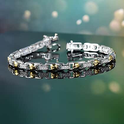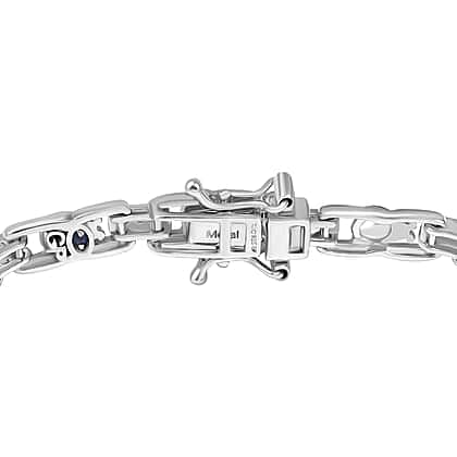 GP Ladybird Collection - White Zircon & Blue Sapphire Line Bracelet (Size - 7) in 18K Vermeil Yellow Gold Plated & Rhodium Overlay Sterling Silver, Silver Wt. 10.55 Gms.