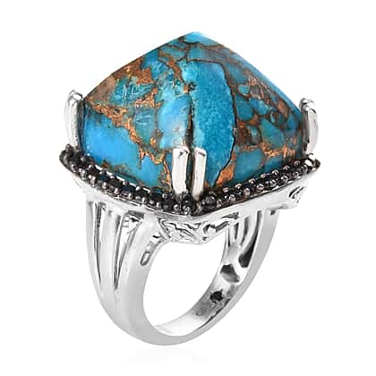 GP 33.25 Ct Mojave Blue Turquoise and Multi Gemstone Cocktail Halo Ring in Platinum Plated Silver