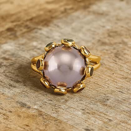 GP Multi Color Edison Pearl, Kanchanaburi Blue Sapphire & Multi-Tourmaline Ring in Yellow Gold Plated Sterling Silver 9.77 Ct, Silver Wt. 5.50 Gms.