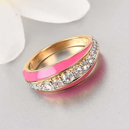 - ENAMELLING: A bright pink hue is enamelled on the dome of the ring's head and adds a contrasting look