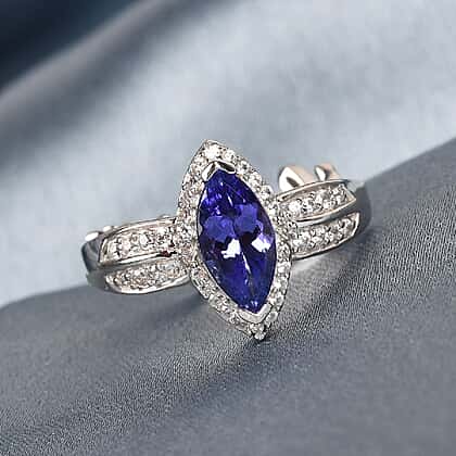 - Cut in marquise shape for giving the ring a sophisticated look, the tanzanite surrounded by natural Cambodian zircons looks extremely covetable