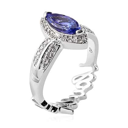 GP Platinum Plated Sterling Silver 1.30 Ct. Tanzanite Ring with Natural Cambodian Zircon and Blue Sapphire