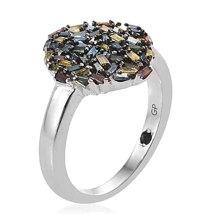 - Cluster Ring set in Platinum Overlaying Sterling Silver 4.5 Grams