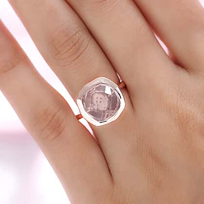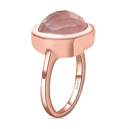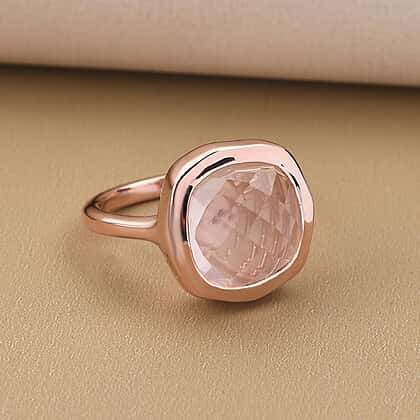 GP - Rose Quartz Ring in 18K Vermeil Rose Gold Plated Sterling Silver 6.36 Ct.