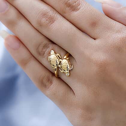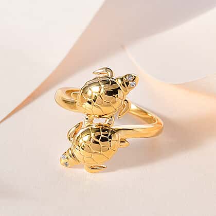 The inspiration for this ring comes from the beauty and strength of the tortoise. Tortoises are known for their long lifespans, their ability to survive in harsh environments, and their slow but steady progress. The ring, a part of the GP Sea Life Collection, features two tortoises crafted from 18K Yellow Gold Vermeil Plated Sterling Silver. Intricate detailing on the shell and zircons set as eyes complete the design.