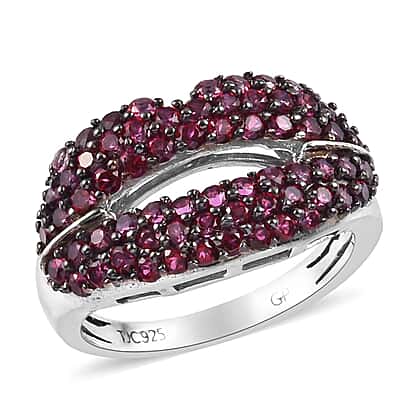 GP 1.50 Ct Signity Blazing Red Topaz and Blue Sapphire Lips Cluster Ring in Platinum Plated Sterling Silver