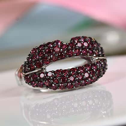 - The incredible lip design is studded with the round cut Signity Blazing Red Topaz