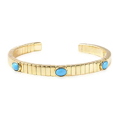 GP Collection - Tubo gas - Arizona Sleeping Beauty Turquoise Bangle (Size 7.5) in Yellow Gold Overlay Sterling Silver