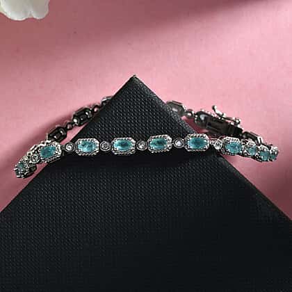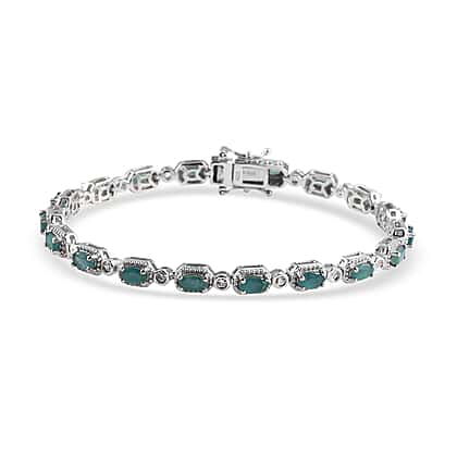 Grandidierite , White Zircon Line Bracelet 1 Row (Size - 7) in Platinum Overlay Sterling Silver 5.23 ct 4.392 Ct.