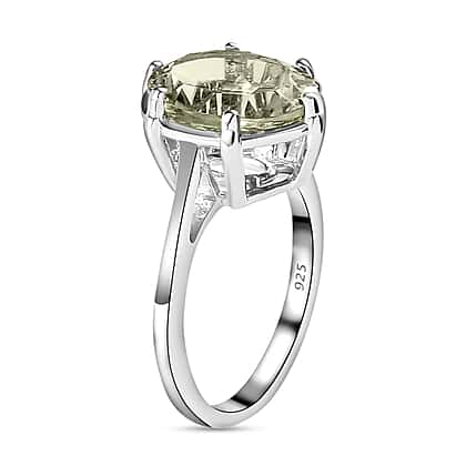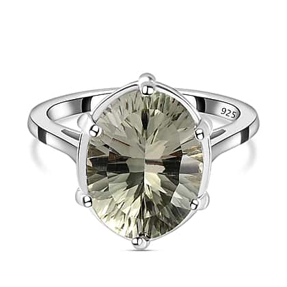 Green Amethyst (Concave Cut) Solitaire Ring in Platinum Overlay Sterling Silver 8.09 Ct.