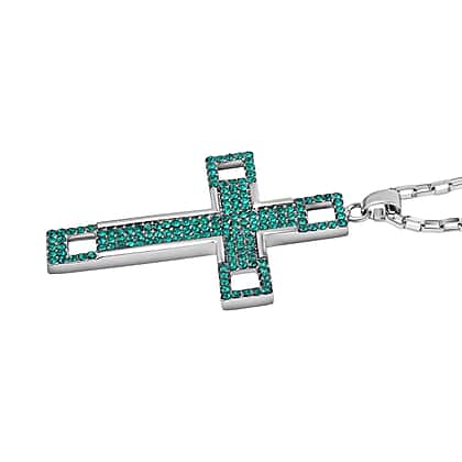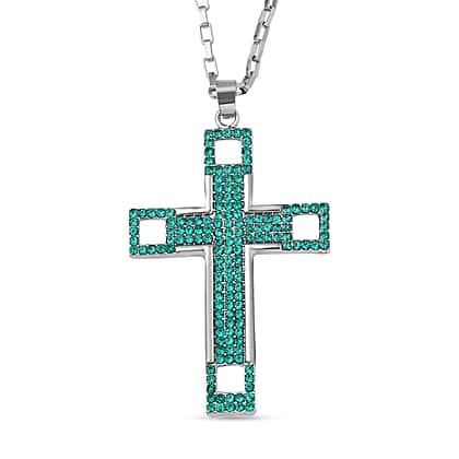 Green Austrian Crystal Cross Necklace (Size - 24-2 inch Ext.)