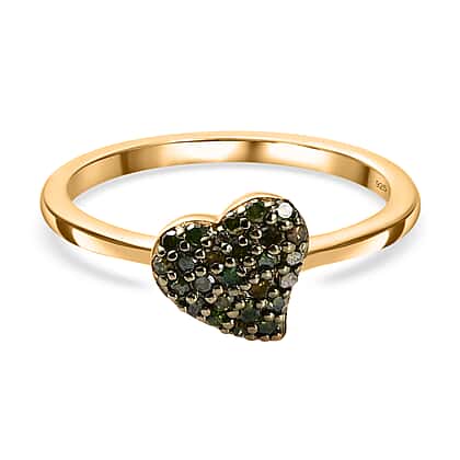 Green Diamond Heart Ring in 18K Vermeil Yellow Gold Plated Sterling Silver 0.20 Ct.