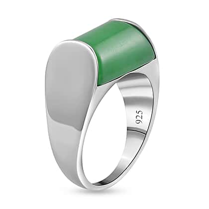 Green Jade Ring in Rhodium Overlay Sterling Silver 12.00 Ct, Silver Wt. 6.50 GM