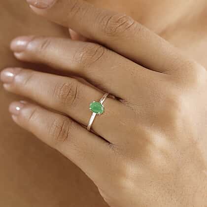 Green Jade Ring in Sterling Silver 1.04 Ct.