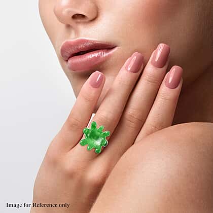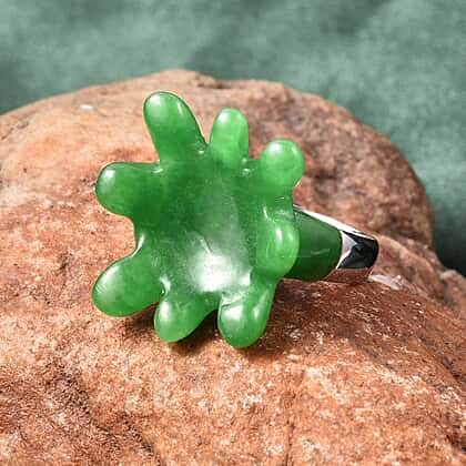 Green Jade Water Splash Ring in Rhodium Overlay Sterling Silver 24.750 Ct.