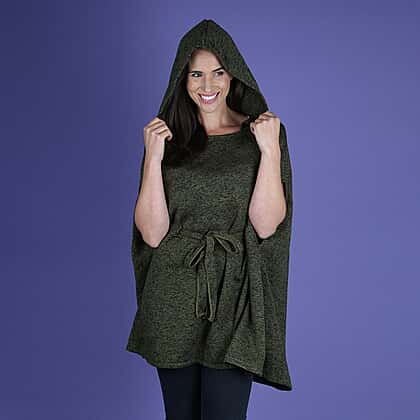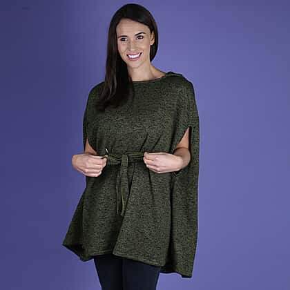 Green Knitted Poncho with Waistbelt (Size 55x77cm)