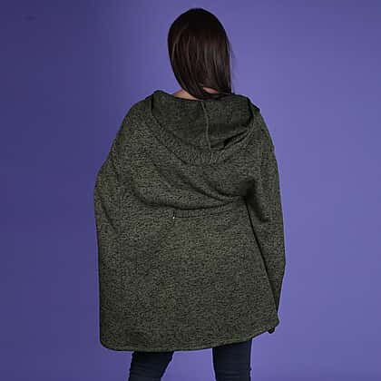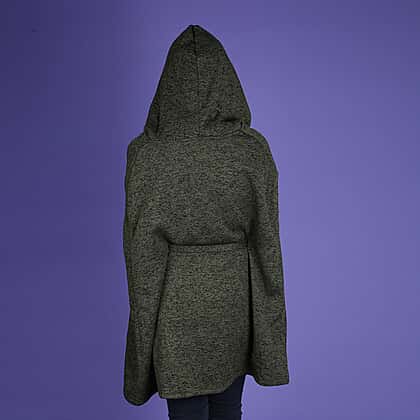 Hooded Neckline Knitted Poncho with Waist belt - Green