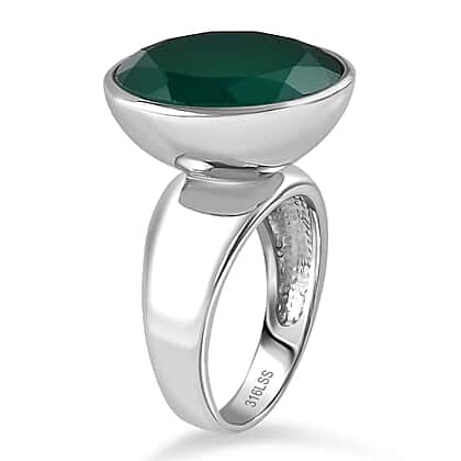 Bold and beautiful, this Green Onyx Solitaire Ring makes a statement without saying a word. The deep, forest-green onyx sits proudly in a sleek bezel setting, designed to showcase its faceted surface and rich natural hue. Crafted in stainless steel, the ring is hypoallergenic, tarnish-resistant and built for everyday wear without compromising comfort or style. The smooth, polished finish complements the dramatic silhouette, offering a look that's both grounded and empowering. Whether worn for its calming symbolism or vibrant impact, this ring promises lasting appeal. Perfect for those who embrace individuality, clarity and unapologetic charm in their jewellery choices.