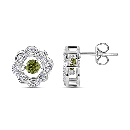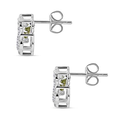 Green & White Cubic Zirconia Earrings in Rhodium Overlay Sterling Silver 1.58 Ct