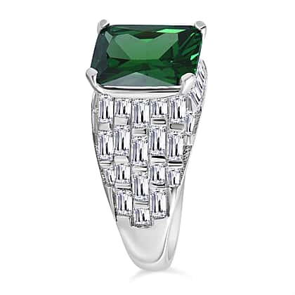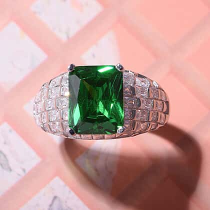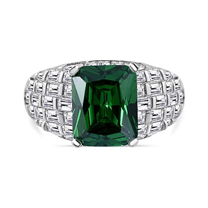Green & White Cubic Zirconia Ring in Rhodium Overlay Sterling Silver