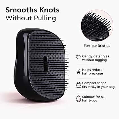 Say goodbye to knots and tangles with the compact styler! This revolutionary brush fits perfectly in your handbag and will transform your locks into smooth, shiny tresses in no time. Its unique design glides effortlessly through wet or dry hair, detangling without pulling or tugging. It is perfect for on-the-go styling and has a protective cover to keep the bristles clean.