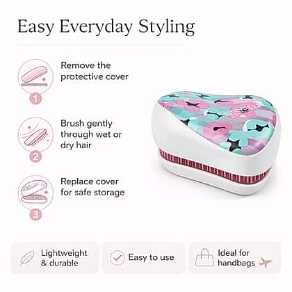 Say goodbye to knots and tangles with the compact styler! This revolutionary brush fits perfectly in your handbag and will transform your locks into smooth, shiny tresses in no time. Its unique design glides effortlessly through wet or dry hair, detangling without pulling or tugging. It is perfect for on-the-go styling and has a protective cover to keep the bristles clean.